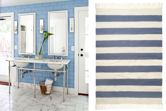 Inspiration 5: For the indecisive - keep it small and flexible and add blue accents with a little stripey rug. Choose for example this one as seen on French Connection.
